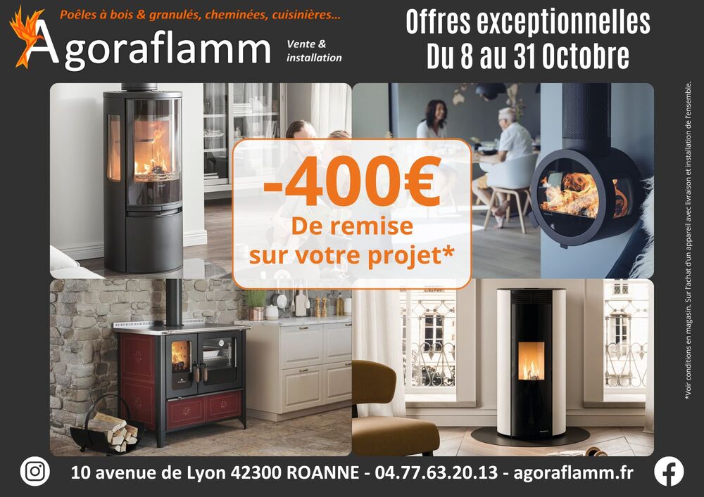 Entreprise familiale implantée dans la Loire (42), AGORAFLAMM Roanne est experte en chauffage écologique et performant. Nous proposons la vente et l’installation d’un large choix de poêles à bois, poêles à granulés, inserts, cheminées métalliques, cuisinières et fourneaux, alliant haut rendement et design – du classique au contemporain.
